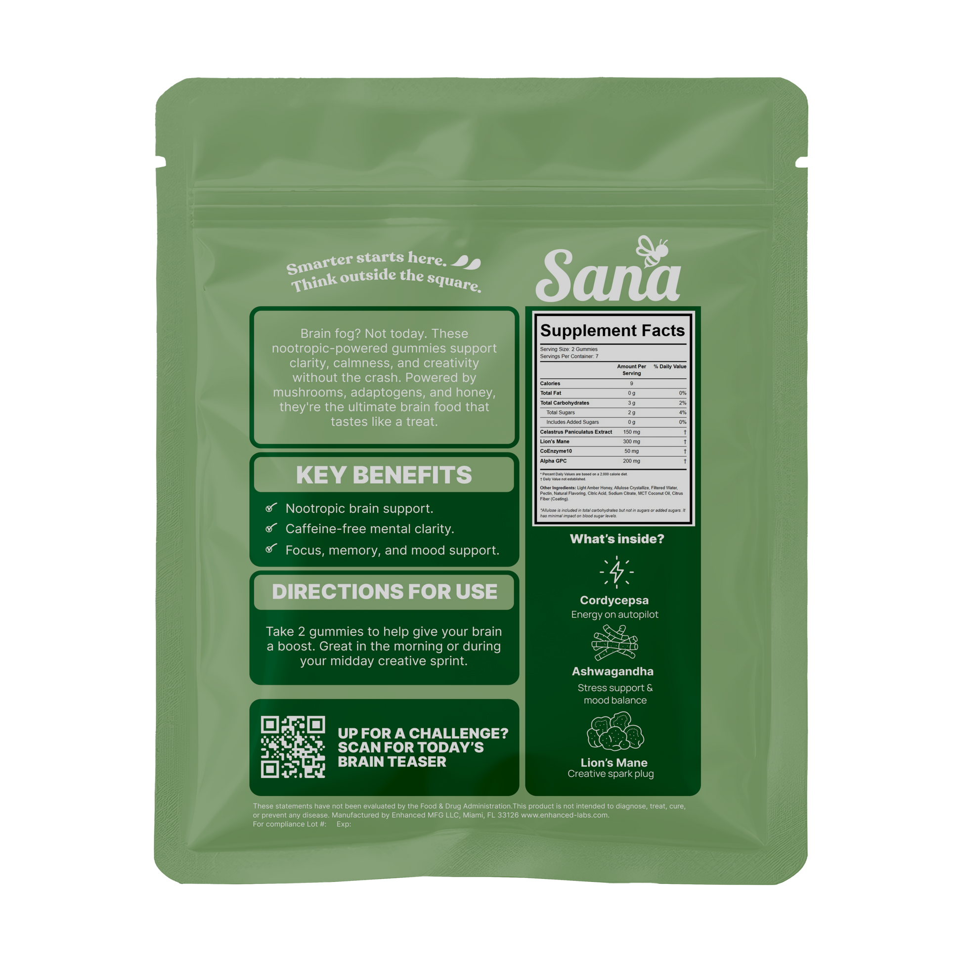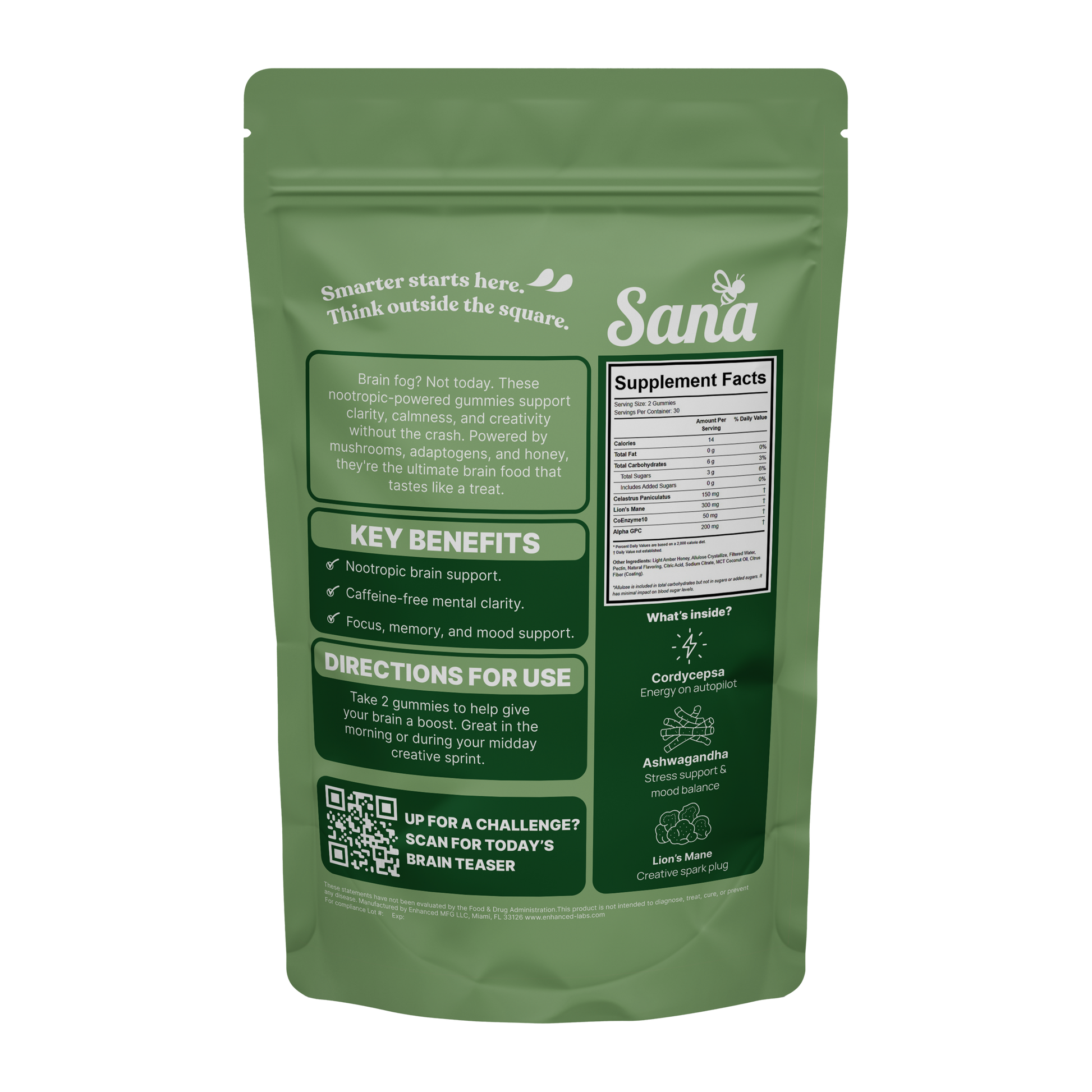 Nootropic focus. Juicy green apple. Zero brain fog.
