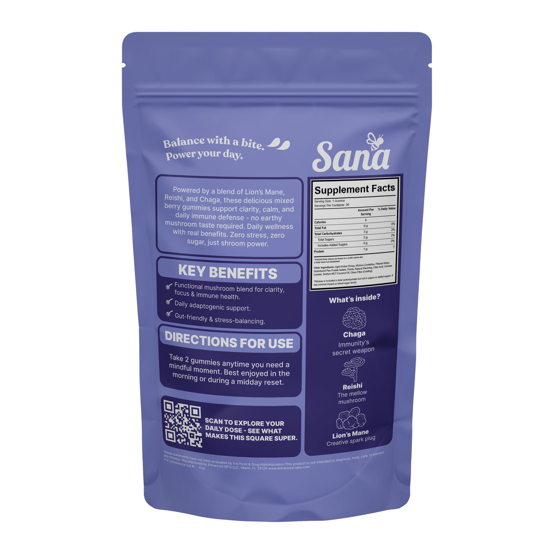Meet your daily mood manager, brain booster, and immune system hero—all packed into a ridiculously good mixed berry-flavored gummy. Sana Supershroom Gummies are what happens when seven mushrooms walk into one gummy and decide to support your entire system.